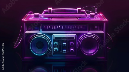 Fototapeta premium Vibrant Retro Boombox with Neon Lights in the Dark