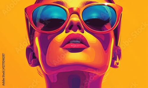 © dia, Fototapeta premium Vibrant Retro Pop Art Woman in Sunglasses with Bright Colors and Vintage Charm Modern Poster Design