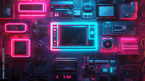 © Thaweechai, Obraz premium Vibrant Retro 80s Style Banner with Neon Elements