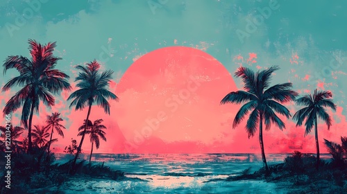 Fototapeta premium Vibrant retrowave aesthetic background with neon lights and gridlines.