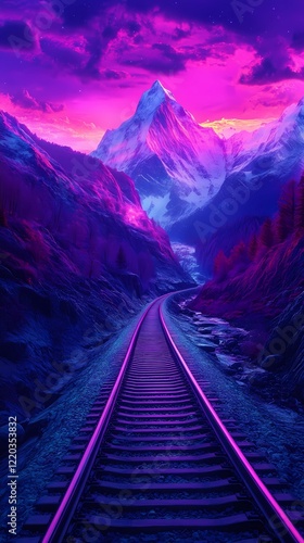 Fototapeta premium Vibrant retrowave aesthetic background with neon lights and gridlines.