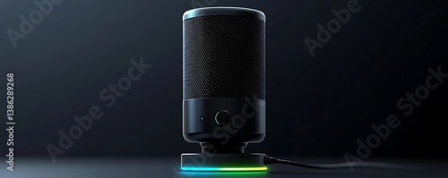 Fototapeta premium Vibrant RGB lighting surrounds a high-quality gaming microphone, immersing you in the world streaming.