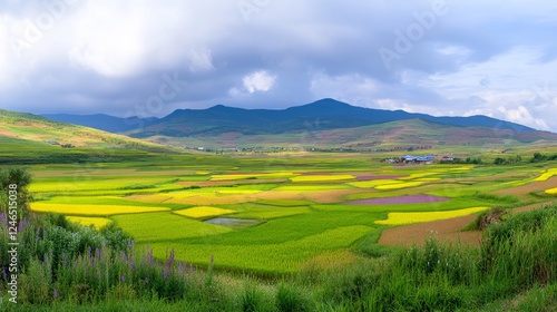 © Big9869, Obraz premium Vibrant Rice Terraces and Mountain Scenery in Yunnan