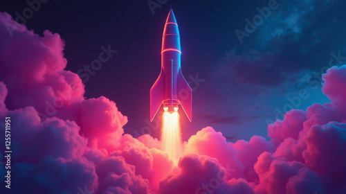 Fototapeta premium vibrant rocket launching through colorful clouds, creating stunning visual