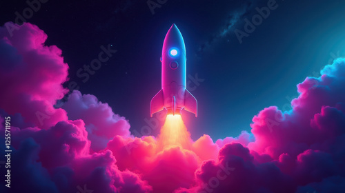 Fototapeta premium vibrant rocket launching through colorful clouds, symbolizing adventure and...