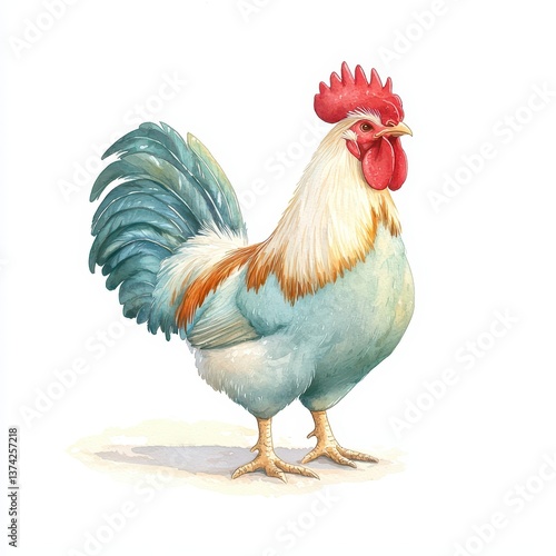 Fototapeta premium Vibrant rooster displaying plumage in farmyard setting animal illustration...
