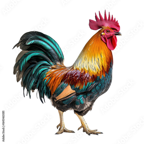© Anha, Fototapeta premium Vibrant Rooster Isolated Black Background Stunning Feathers, isolated on a transparent background