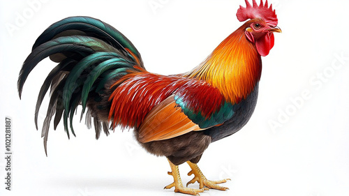 © Pangsiri, Fototapeta premium vibrant rooster with colorful feathers stands proudly, showcasing its beauty