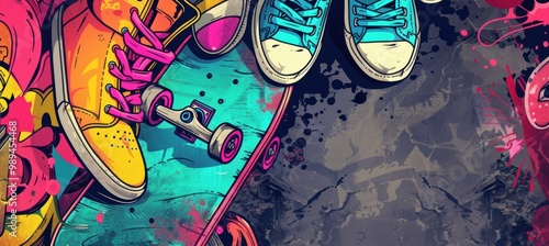 Fototapeta premium Vibrant 90s Skate Culture Banner for Urban Art Design, Print, Card, Poster