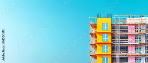 Obraz premium Vibrant Scaffolding Envelops Building Under Construction with Balanced Composition