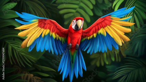© Ratchanee, Fototapeta premium Vibrant Scarlet Macaw in Lush Tropical Forest Background