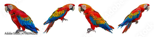 © Maestro, Fototapeta premium Vibrant scarlet macaws in different poses cut out png on transparent background