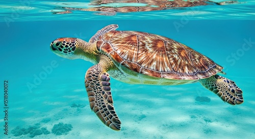 © Irfan, Fototapeta premium Vibrant Sea Turtle Swimming Ocean Colorful Fish Underwater Paradise Scene