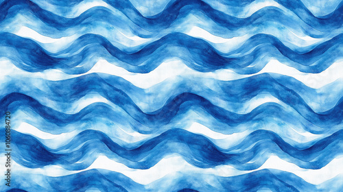 © NeuralNiche, Obraz premium Vibrant seamless pattern featuring a full frame of flowing blue watercolor stripes perfect for textile design and creative projects