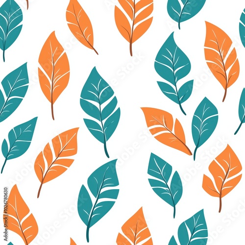 Fototapeta premium Vibrant seamless pattern of orange and blue leaves on white background