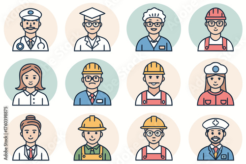 Naklejka premium Vibrant Seamless Wallpaper Professions Icons Premium Digital Asset