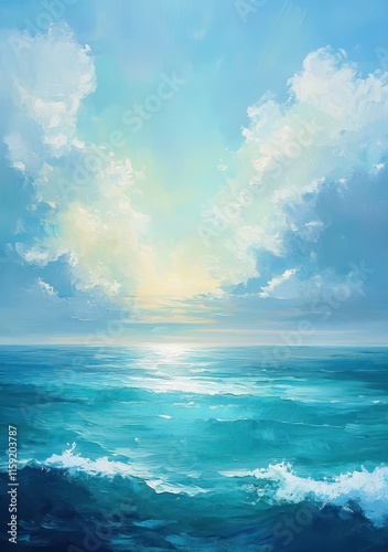 © Blackmint Studio, Obraz premium Vibrant seascape at dawn with gentle waves and dramatic skies