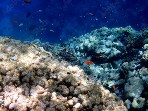 © chriss73, Fototapeta premium Vibrant shallow coral reef teeming with small fish