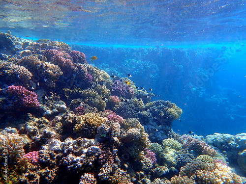 © chriss73, Fototapeta premium Vibrant shallow coral reef teeming with small fish