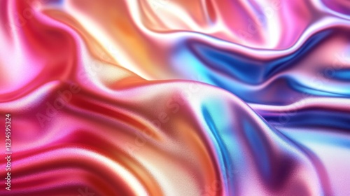 © anatolii, Obraz premium Vibrant silk fabric draped in colorful waves, showcasing smooth textures and dynamic reflections of light in a creative design setting