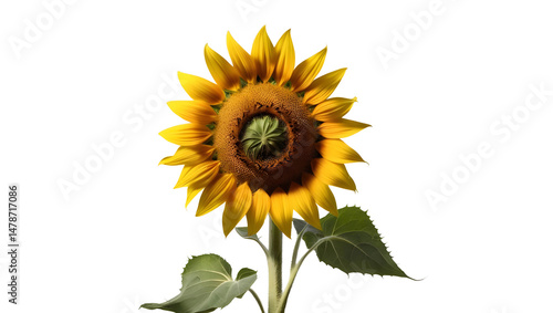 Fototapeta premium Vibrant Single Sunflower Bloom with Bright Yellow Petals and Green Center