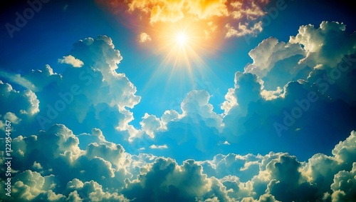 Fototapeta premium Vibrant sky and fluffy clouds in serene harmony