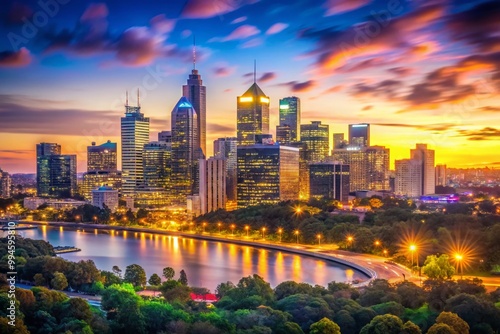 Obraz premium Vibrant skyline of an Australian city showcasing modern architecture and...