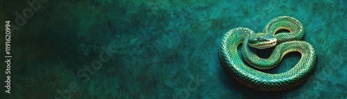 © *Lara*, Fototapeta premium Vibrant snake on an emerald background.
