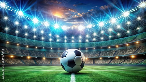 Obraz premium Vibrant soccer arena with flashing lights and a soccer ball in the...