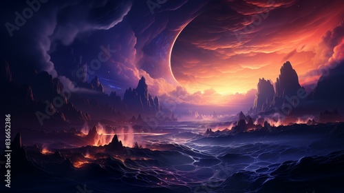 Fototapeta premium Vibrant space nebula illustration with bold lines and dynamic shapes,...
