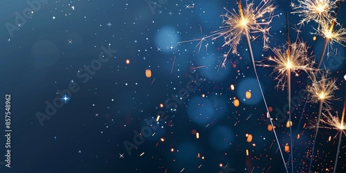 Obraz premium Vibrant sparklers against a blue background create a festive atmosphere,...