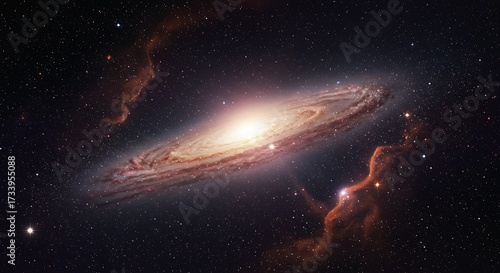 Obraz premium Vibrant spiral galaxy against deep space background with stars and nebulas