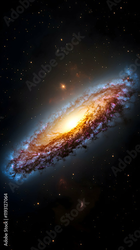 Fototapeta premium Vibrant spiral galaxy illuminated by bright core and ethereal gas clouds in deep space, showcasing cosmic beauty and stellar composition