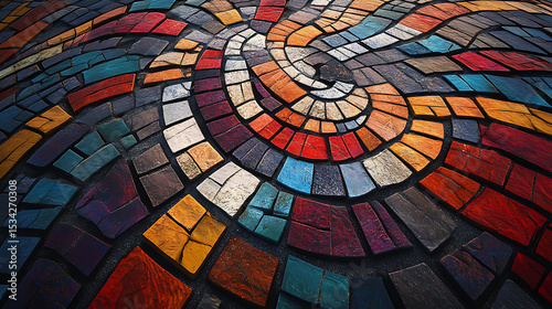 Fototapeta premium Vibrant Spiral Mosaic Pattern Created with Colorful Tiles