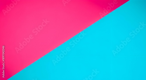 © tanveer1212, Obraz premium Vibrant split background with a sharp diagonal line, contrasting bold hot pink on one side and bright turquoise on the other.