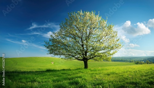 © netsay, Obraz premium Vibrant Spring Blooms Pink and White Blossoms Illuminating a Majestic Tree Amidst the Quiet Peace of Natures Awakening, Capturing the Essence of Spring in Vivid Detail.