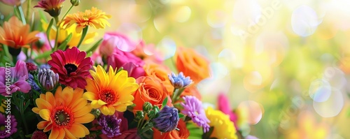 Obraz premium Vibrant Spring Bouquet of Colorful Flowers With Soft Blurred Background