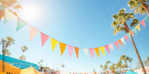 Fototapeta premium Vibrant Spring Fair with Festive Bunting and Palm Trees