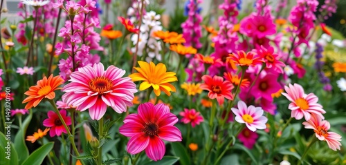 © chonlada, Obraz premium Vibrant spring flowers blooming from a white computer in a lush garden, flora, bright colors