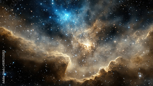 © siraphol, Naklejka premium Vibrant star cluster shining through colorful gas clouds in deep space