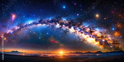 © Arnada, Obraz premium Vibrant Starry Night Panorama: Colorful Cosmic Universe Wallpaper