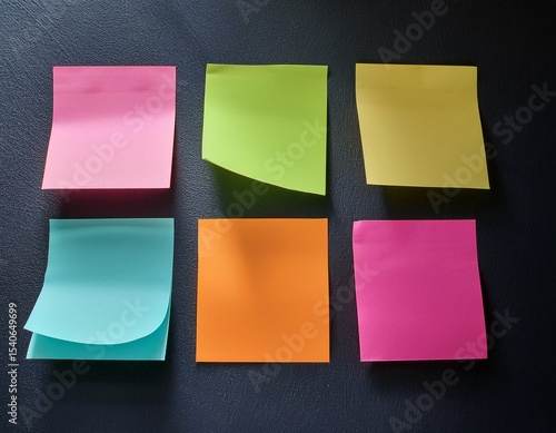 © Ellen, Fototapeta premium vibrant sticky notes on a dark board inspiring ideas
