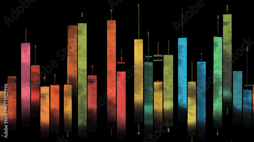 © Aryan, Obraz premium Vibrant Stock Market Trading Volume Bars Graph Visualization