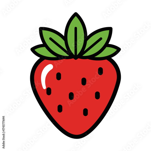 © SUNDARI, Obraz premium Vibrant Strawberry Illustration with Green Leaves and Black Seeds.