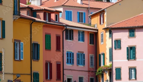 Fototapeta premium Vibrant stucco buildings, colorful shutters, terracotta rooftops, italian,...