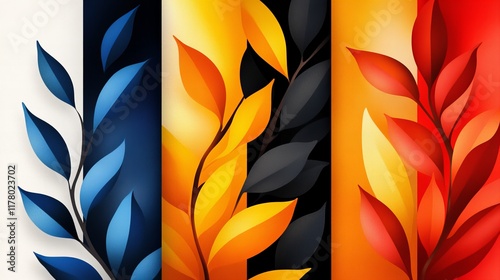 Fototapeta premium Vibrant stylized leaf artwork in bold colors. A modern graphic design...