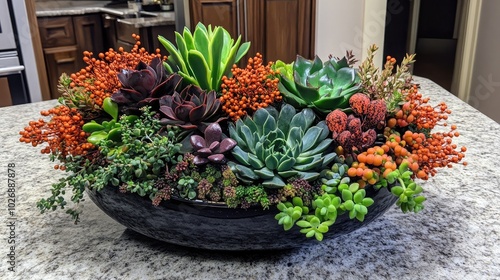 Fototapeta premium Vibrant Succulent Arrangement on Kitchen Countertop