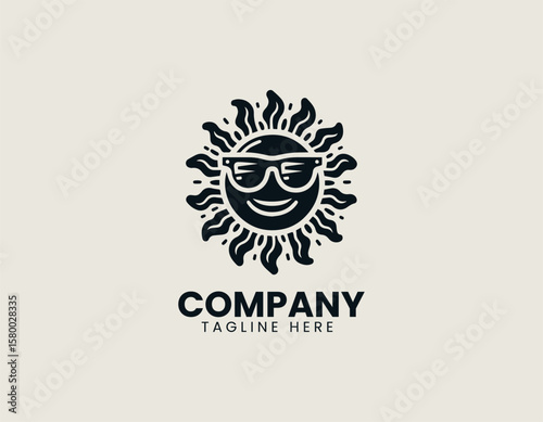 © Dawi Firdaus, Fototapeta premium Vibrant Summer Bank Holiday Sun with Sunglasses Relaxing Vacation Vector Logo Design