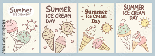 Fototapeta premium Vibrant Summer Ice Cream Day Illustrations Featuring Playful Designs in Soft...