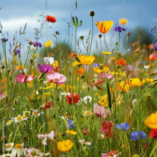 Obraz premium Vibrant Summer Meadow with a Rich Tapestry of Colorful Wildflowers under a...